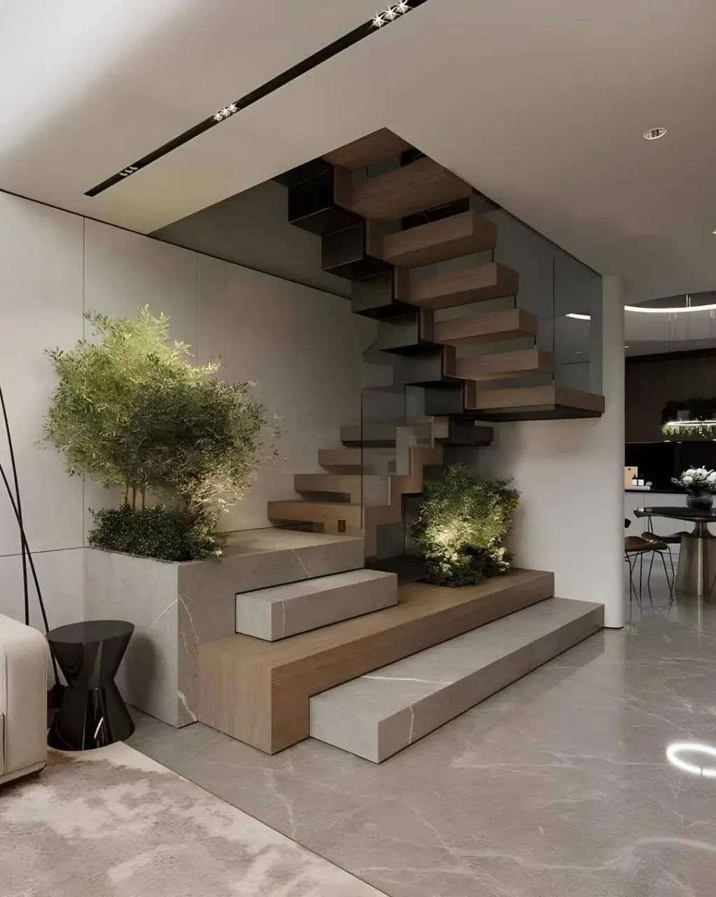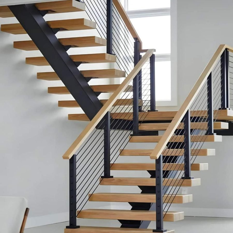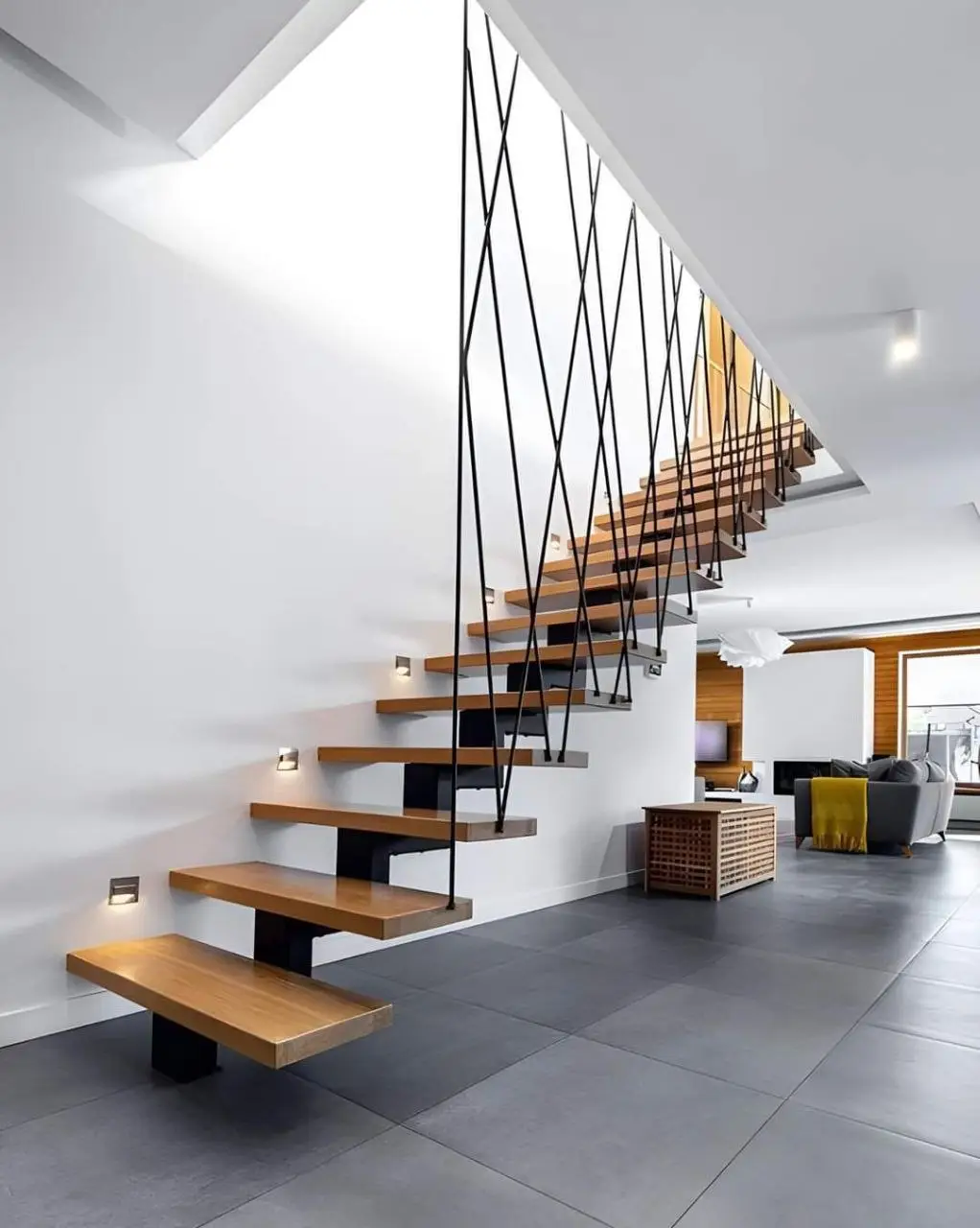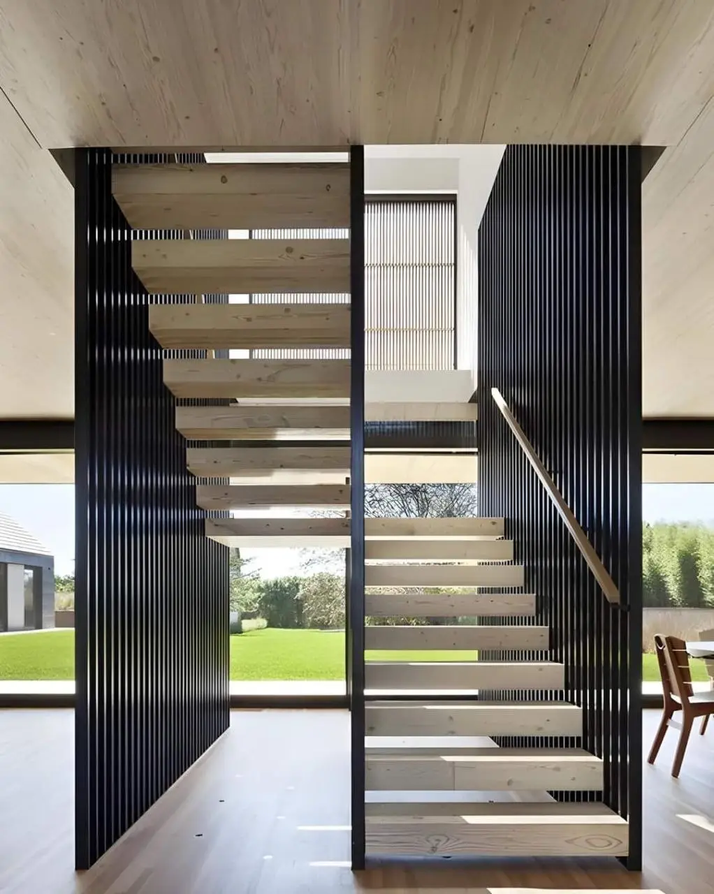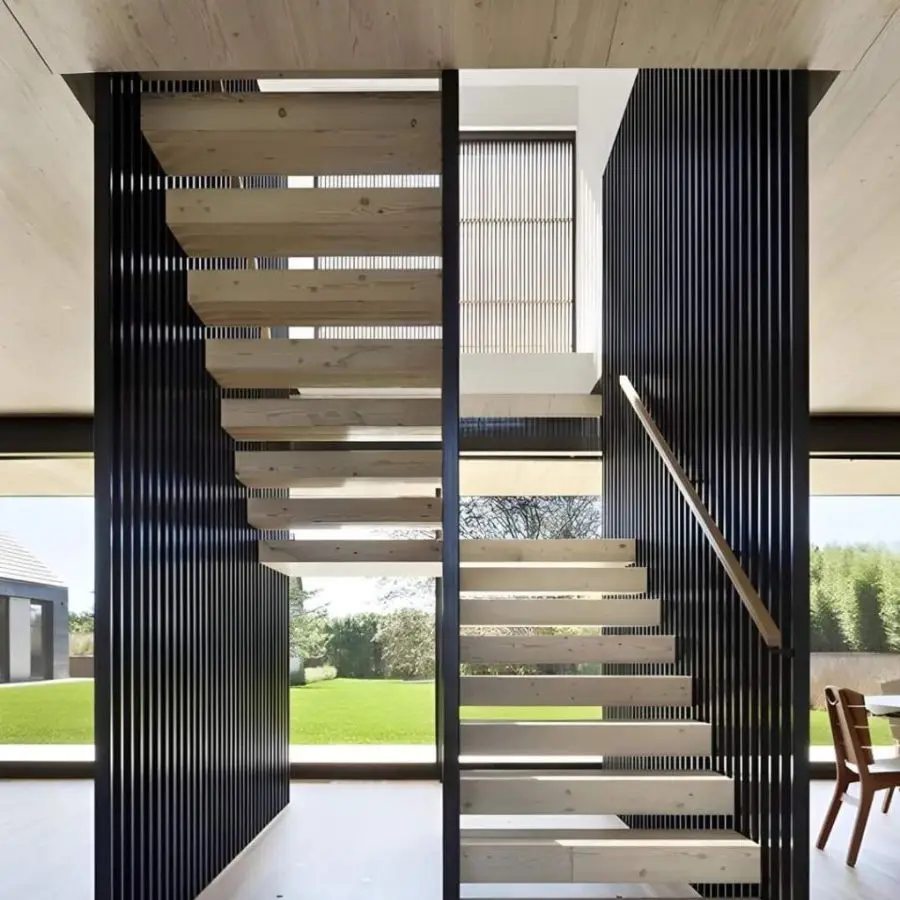 Indoor-outdoor modern staircases and house rails are essential elements of contemporary architecture and interior design, adding both functionality and aesthetic appeal to residential spaces. These features are designed to seamlessly blend indoor and outdoor areas, creating a harmonious transition between different living spaces.